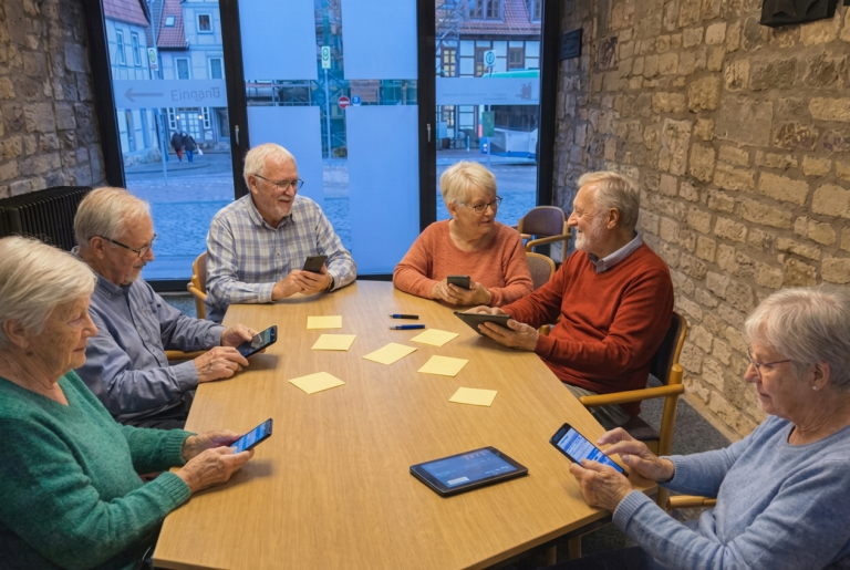 Seit 2022 trifft sich unsere Gruppe regelmäßig zum Austausch rund um die digitale Welt. In lockerer Atmosphäre üben wir den Umgang mit verschiedenen Geräten, gehen offenen Fragen nach und entdecken gemeinsam die Möglichkeiten des Internets. Dabei bleibt immer genug Raum für individuelle Probleme – ob Bedienungsfehler oder knifflige App-Einstellungen.